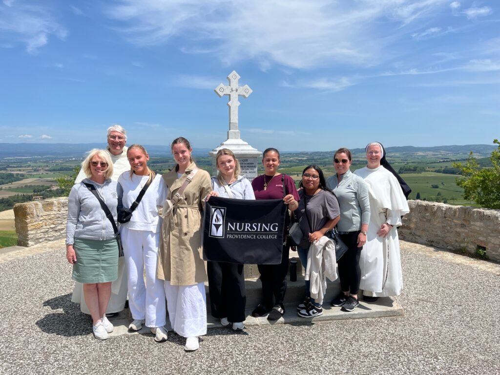 In May 2025, undergraduate nursing students traveled to France for a 10-day academic and spiritual pilgrimage, immersing themselves in the Dominican tradition and the Catholic commitment to healing and human dignity. The experience combined historical exploration, service with the Little Sisters of the Poor, and time at Lourdes—an international center of pilgrimage and healing.